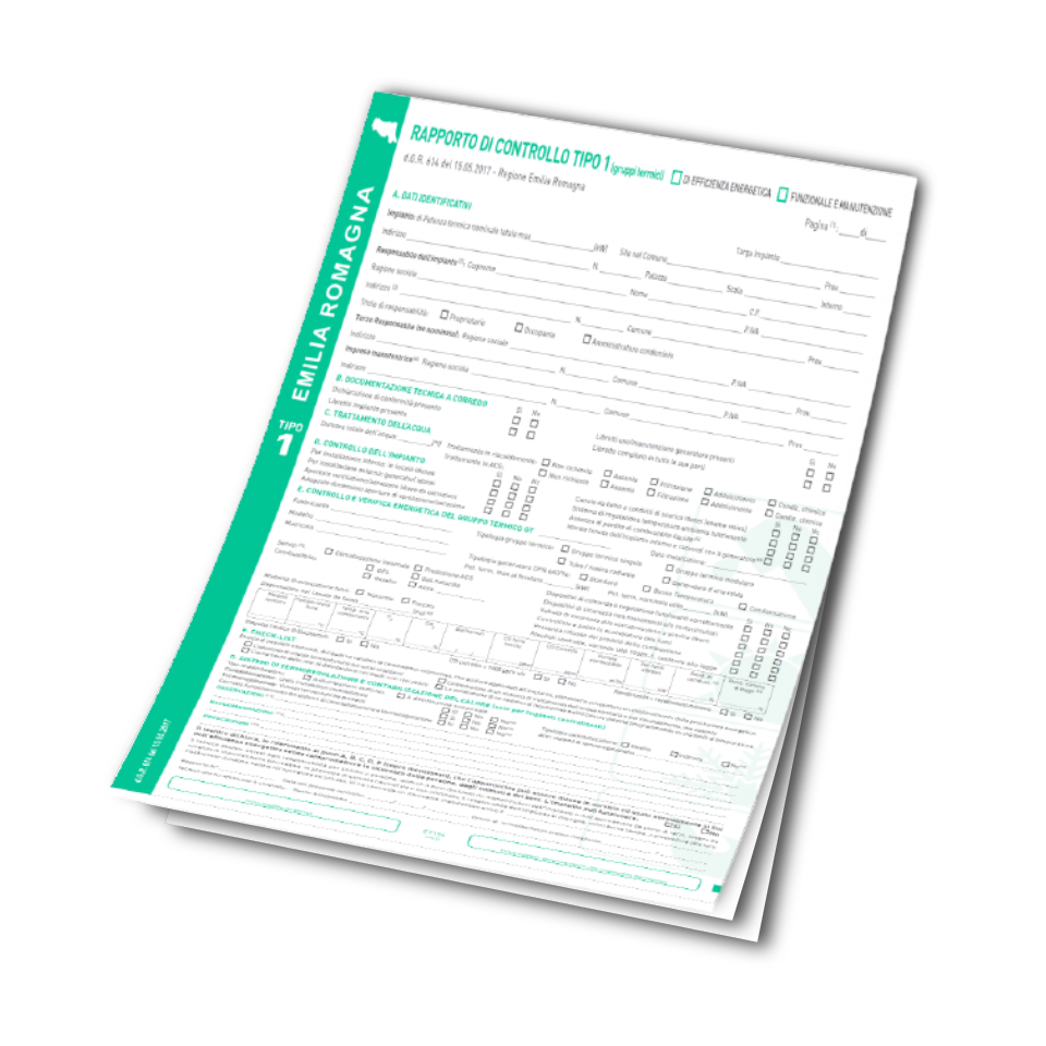 apporti di Controllo Tipo 1 (Gruppi Termici) su carta chimica 3 copie in formato A4 per la compilazione manuale