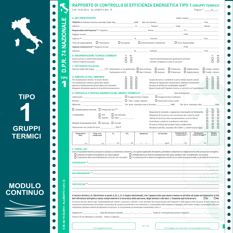 Rapporti di Controllo Tipo 1 (Gruppi Termici) su modulo continuo a 3 copie
