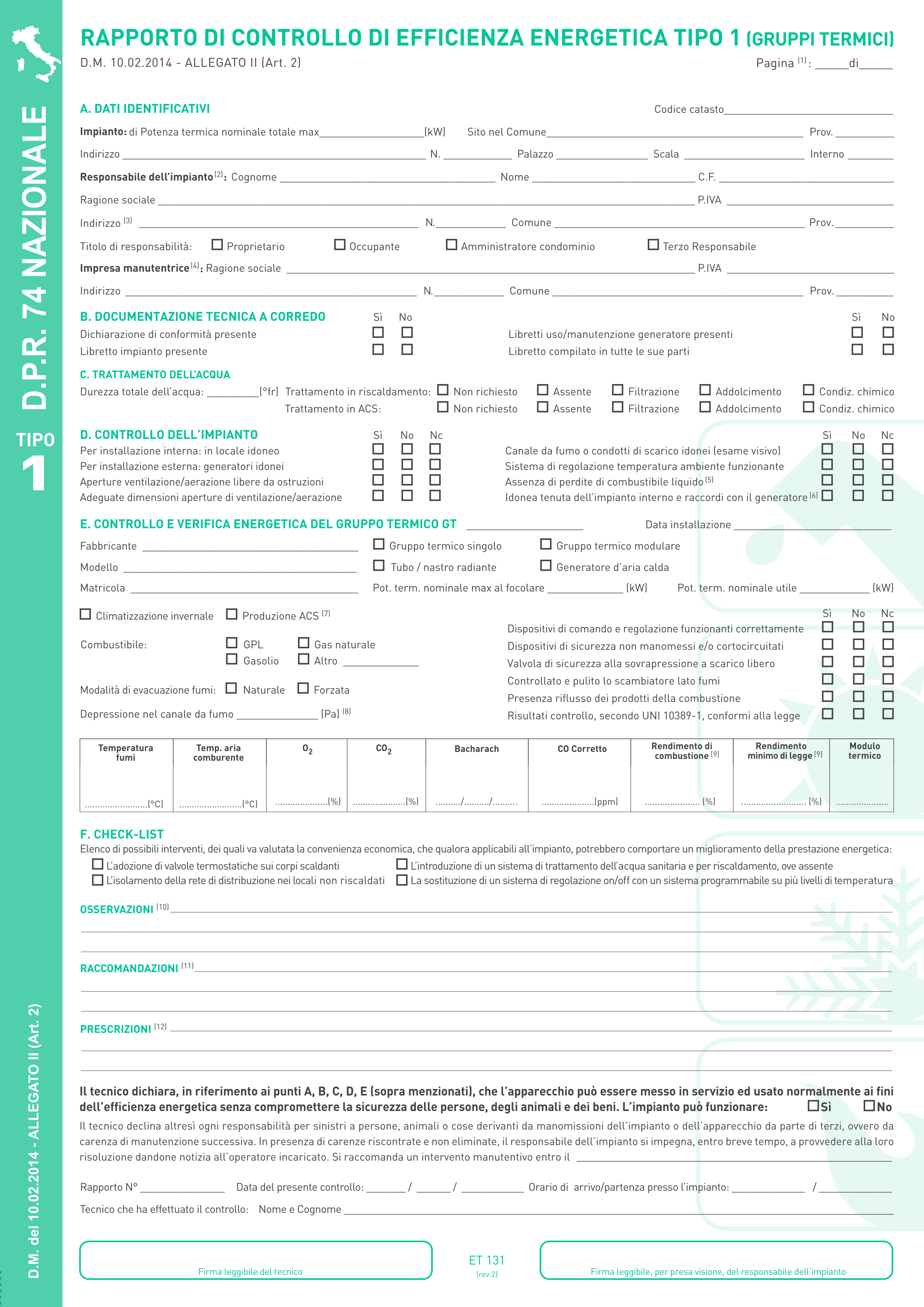 ET131-MC RAPPORTI DI CONTROLLO NAZIONALI TIPO 1 IN MODULO CONTINUO
