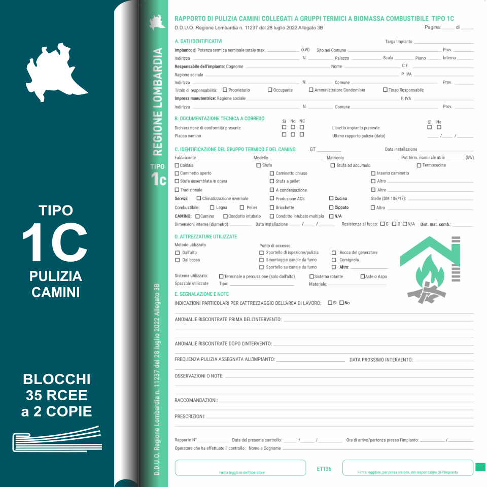 ET136-BLS BLOCCO 35 RAPPORTI DI CONTROLLO A 2 COPIE LOMBARDIA TIPO 1C
