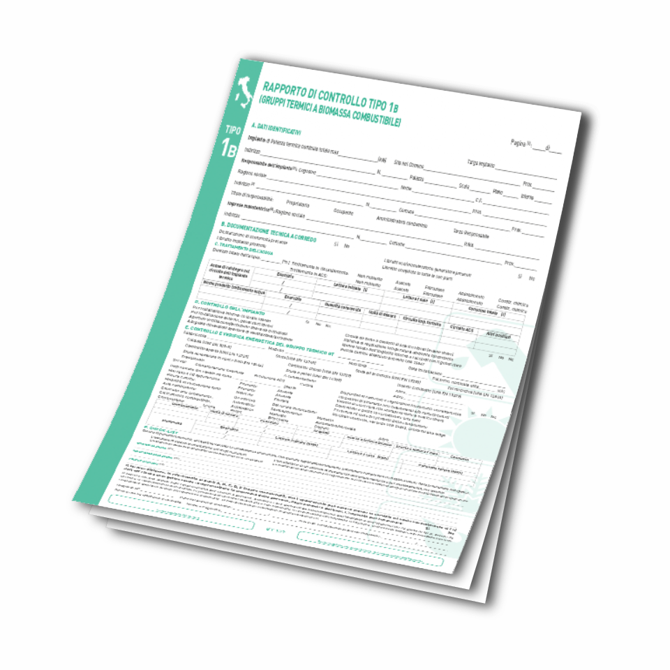 Rapporti di Controllo Tipo 1B (Biomassa) su carta chimica 3 copie in formato A4 per la compilazione manuale