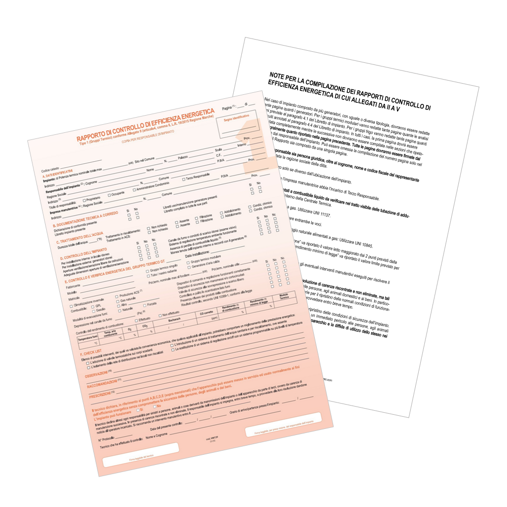 Rapporti di Controllo Tipo 1 (Gruppi Termici) su carta chimica 3 copie in formato A4 per la compilazione manuale conformi al L.R. 19/2015 Regione Marche