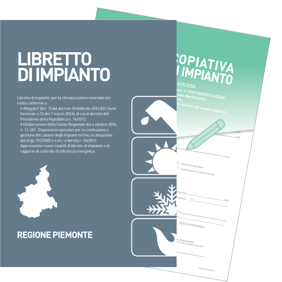 Elegante libretto in formato A4 con copertina colorata e spazio sul retro per l’applicazione di timbro o adesivo aziendale. Ogni libretto è composto da 48 pagine che riportano tutte le schede previste dal D.P.R. 74/2013, con una disposizione ottimizzata alle principali esigenze del parco installato.