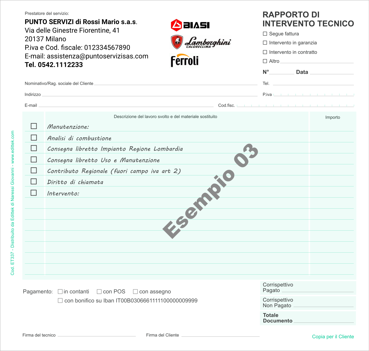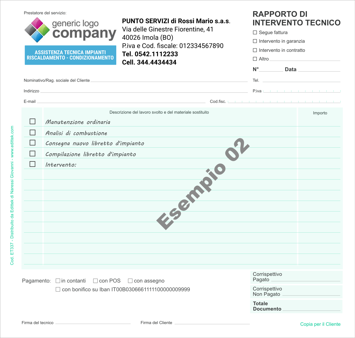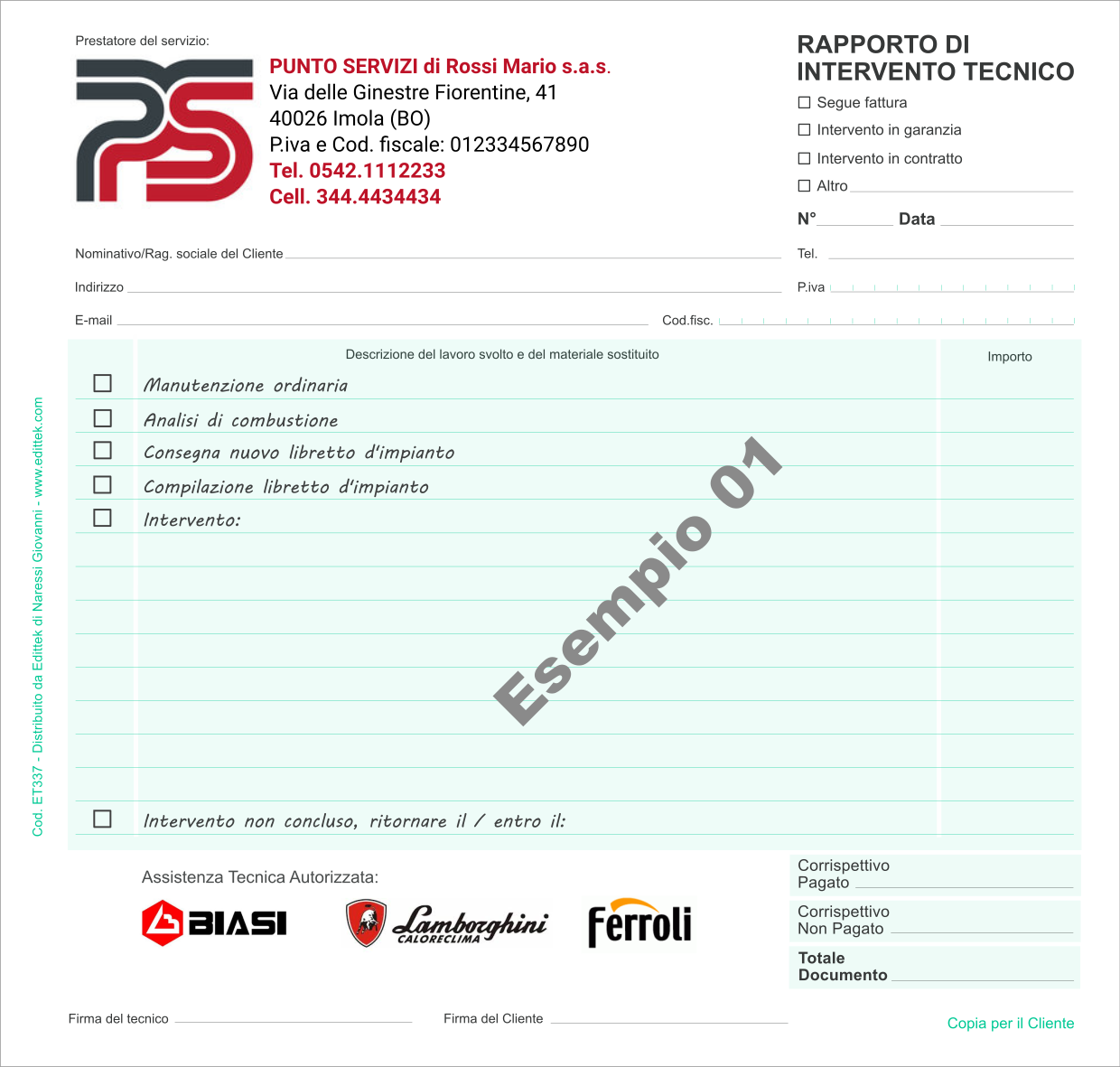ET337P RAPPORTI DI INTERVENTO PERSONALIZZATI (COLORI)