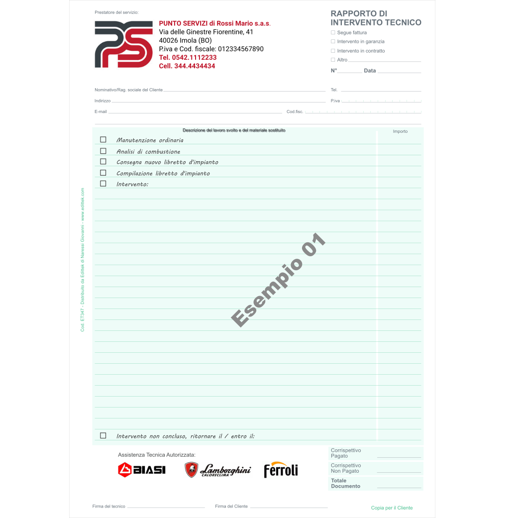 ET347P RAPPORTI DI INTERVENTO TECNICO PERSONALIZZATI (COLORI)