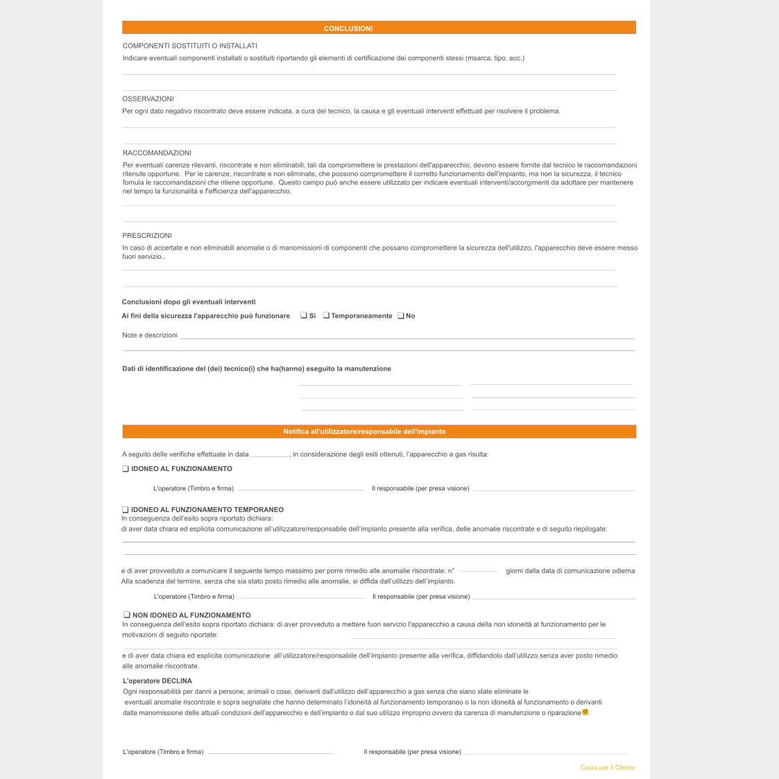 Numero rapporti: 10 rapporti monocaldaia + 10 schede apparecchio aggiuntive.