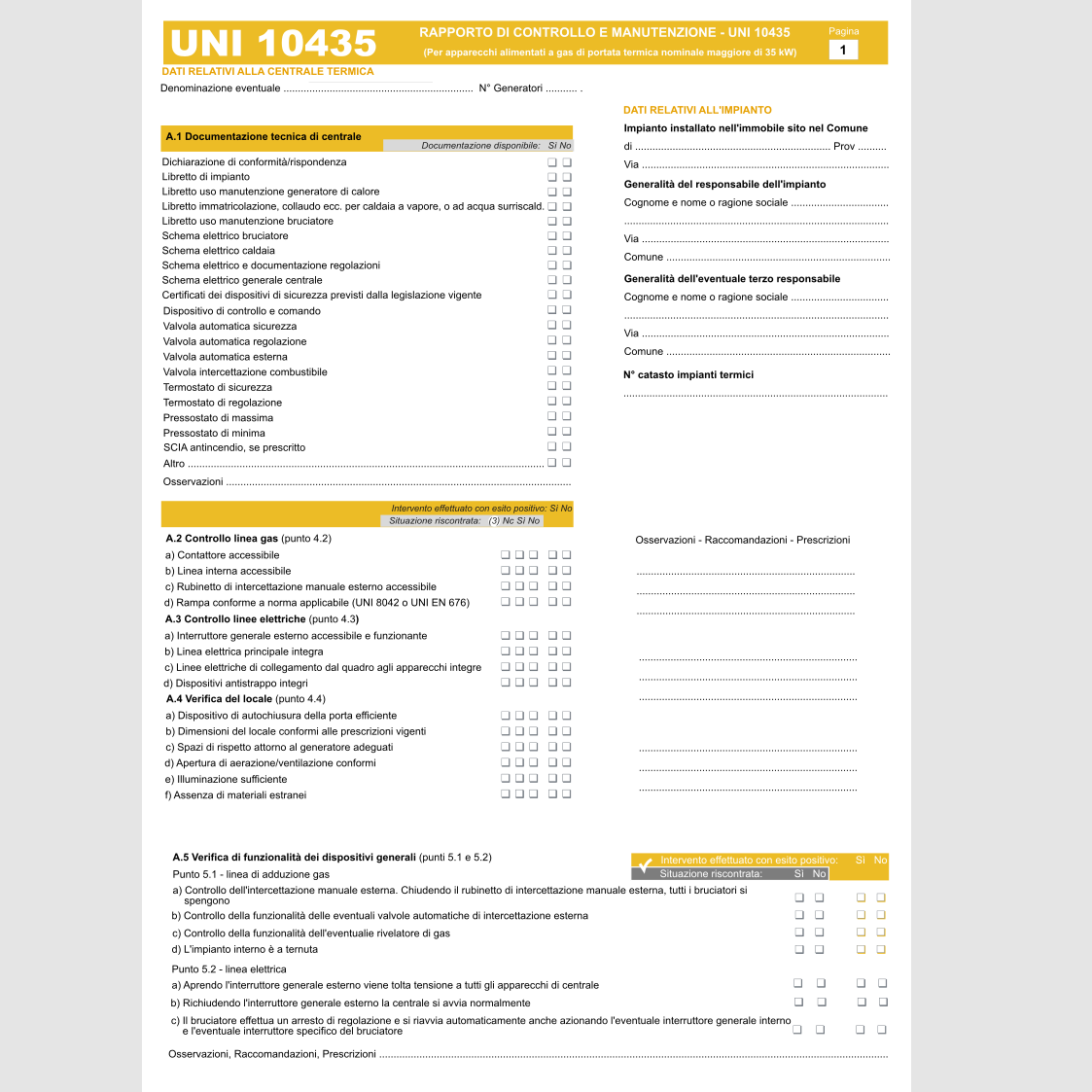 ET435 BLOCCO RAPPORTI CONTROLLO PER APPARECCHI A GAS >35kW UNI 10435:2020