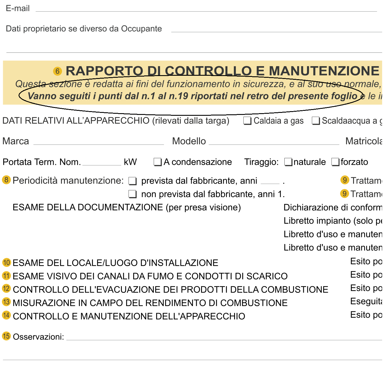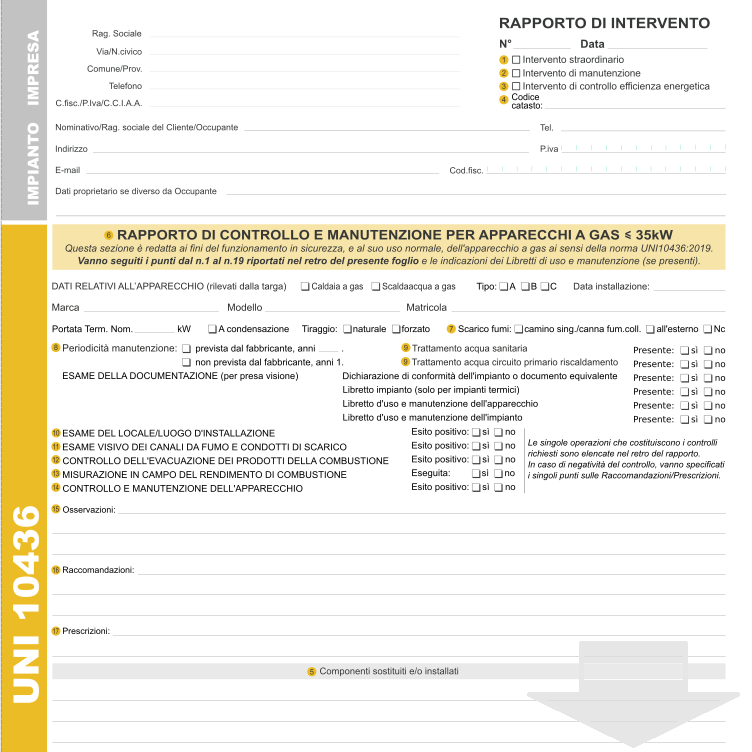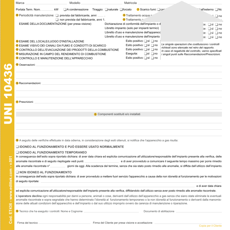 ET436 BLOCCO RAPPORTI CONTROLLO PER APPARECCHI A GAS <35kW UNI 10436:2019