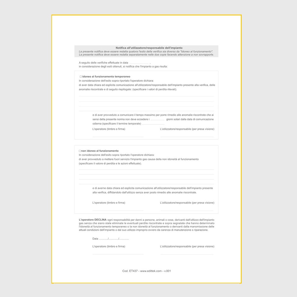 ET437 BLOCCO RAPPORTI DI VERIFICA TENUTA IMPIANTO